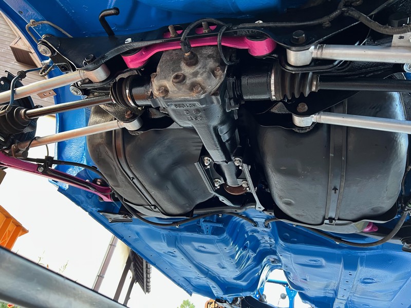 It’s starting to look really nice. The rear suspension is finally reunited with the car.