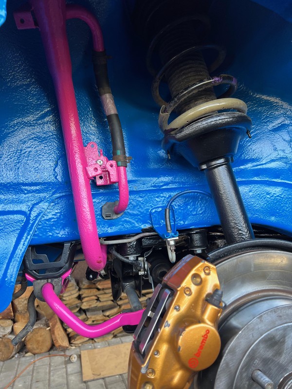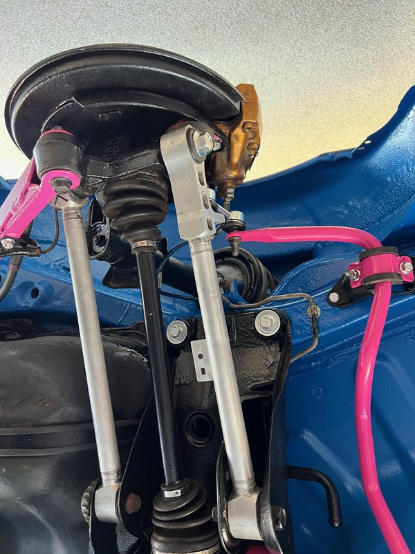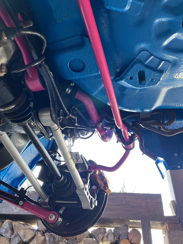 The rear sway bar and a pair of new links have been installed because the old ones had an encounter with an angle grinder.