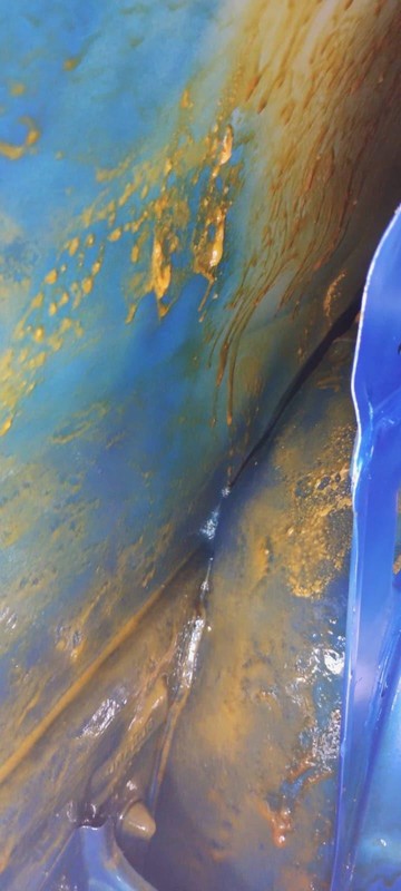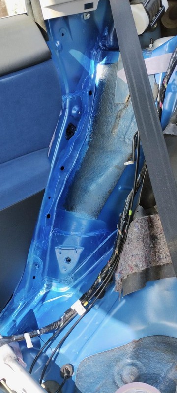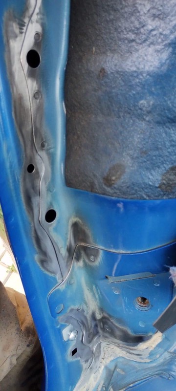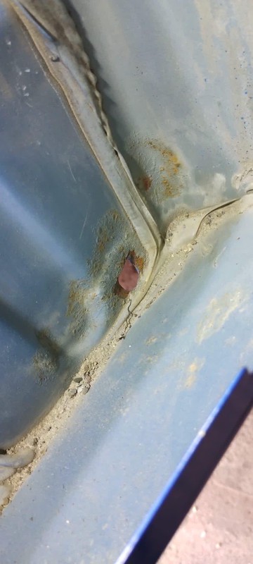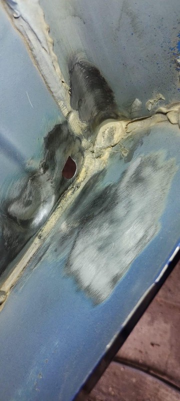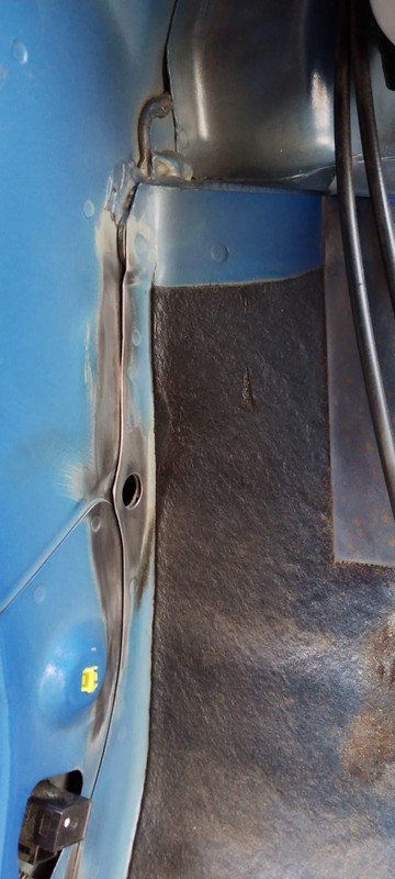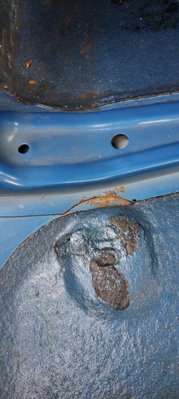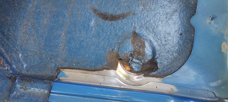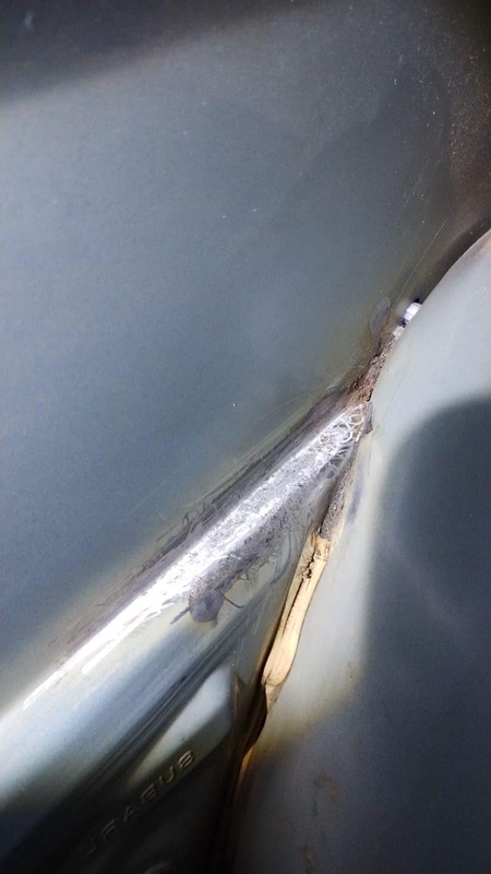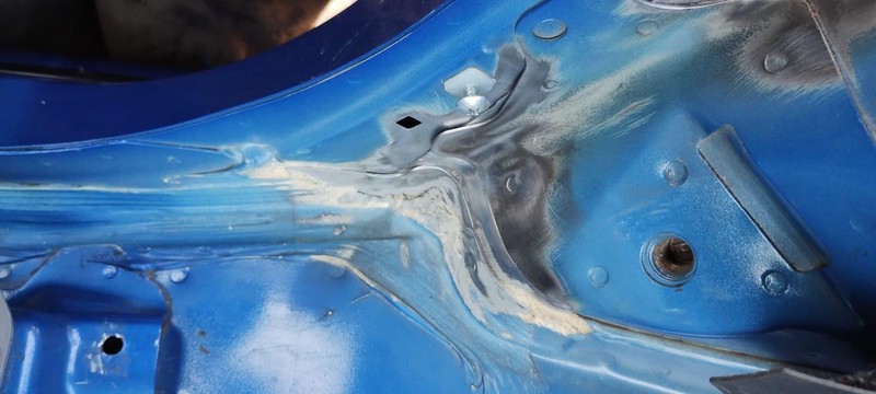 - A weld on the right strut tower, which surprised me a bit because from the outside, this area looked fine, but on the inside, where the seam is, rust had already started to form: