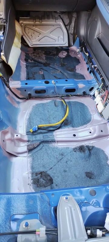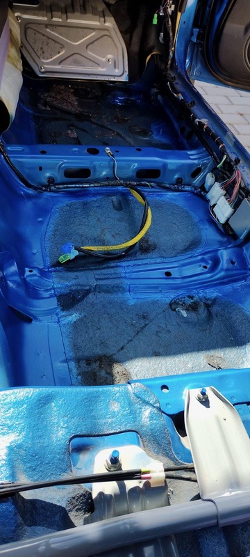 During the summer holidays, we stripped the interior from the dashboard to the trunk; now it’s time to finish the job. Although I’m already in Poznań, Tomek is still working on it. The condition is actually very good, no holes or deep rust pitting.