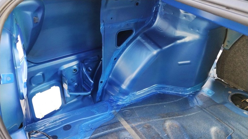 You’ll notice that the primer was applied with a brush, we did it this way on purpose because the spray gun causes too much splatter, and we wanted to protect the interior from stains.