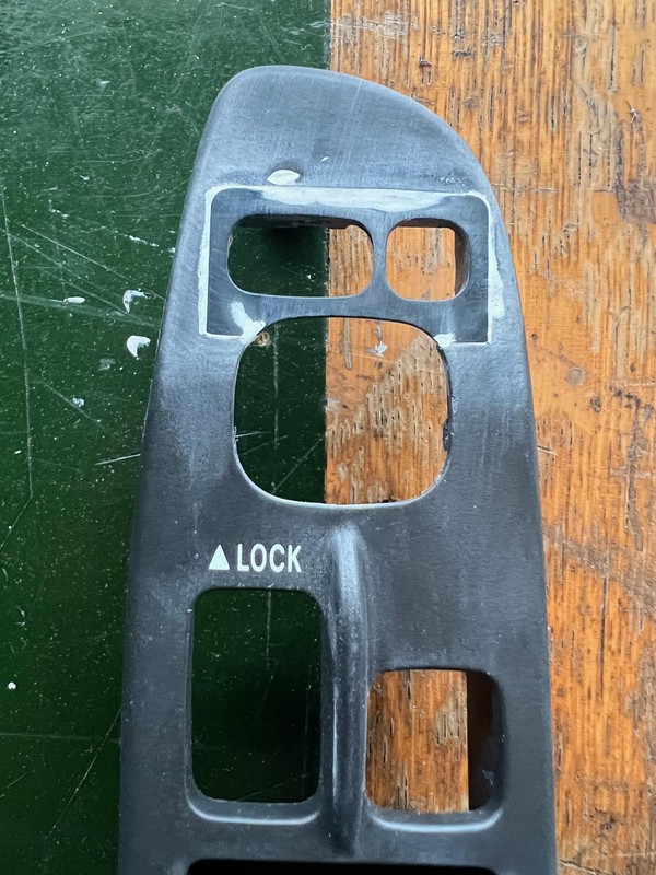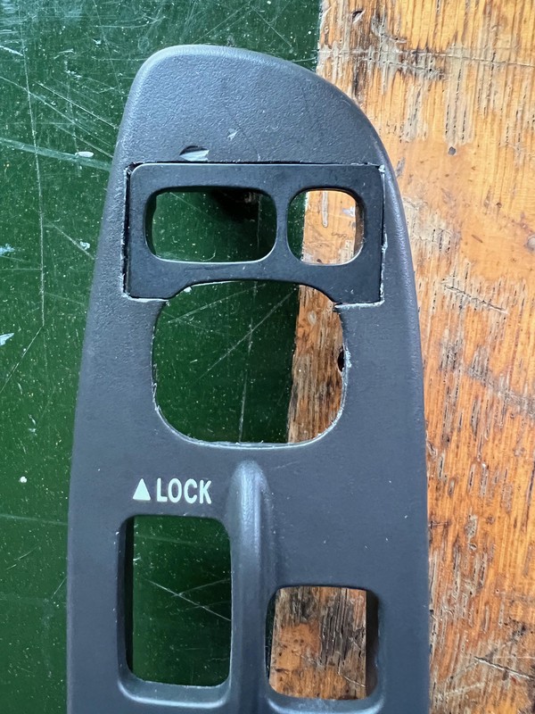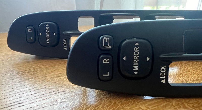The advantage of this solution is that we keep the “ridge” between the two switches (L/R and fold) intact. A keen eye will notice the moment I heard: “You left the sunroof open and it’s starting to rain”.