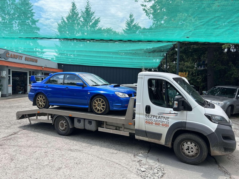 Alarm set for 5 a.m., quick coffee, and off we go. Of course, via Jasło and Gorlice, not the A4 — never miss a chance to take a few more corners. By 8:04, we’re at the workshop: Tomek in a tow truck from a friend, and me in the Impreza. Rendezvous back at 12. By 12:58, this is the view: