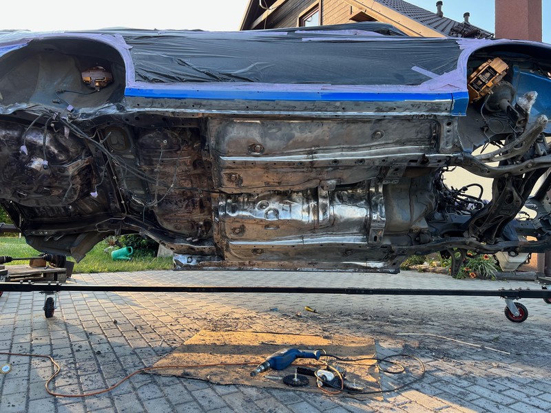 The first grinding sessions quickly turned into worn-out discs, bald brushes, and soot-covered faces. The days blended into a blurred continuity, punctuated by Dinitrol and Interplus 256. Our best friends became the angle grinder and the power drill. For the most stubborn areas, we resorted to sand blasting, but that was definitely the minority.