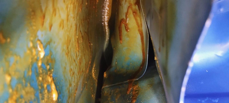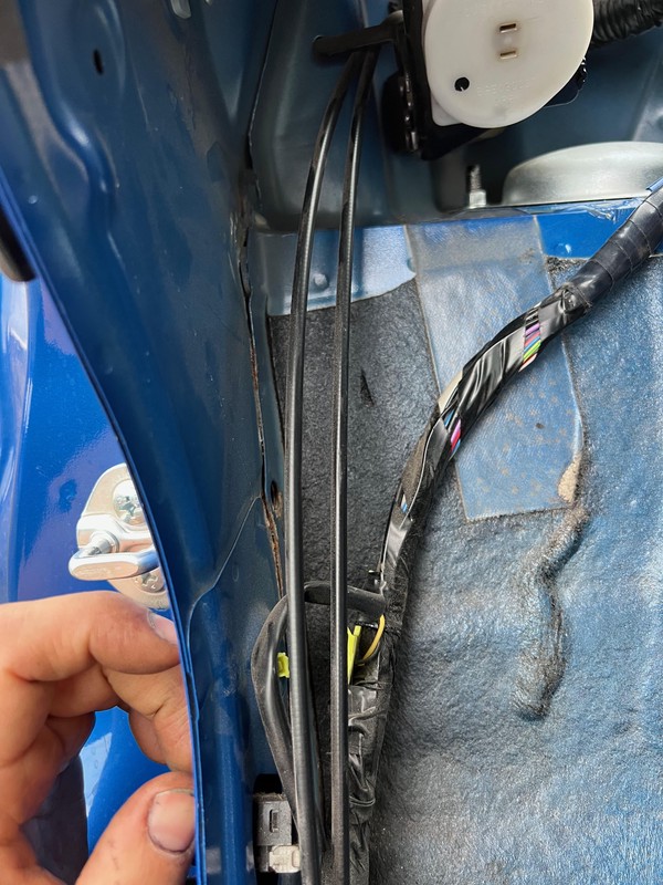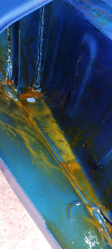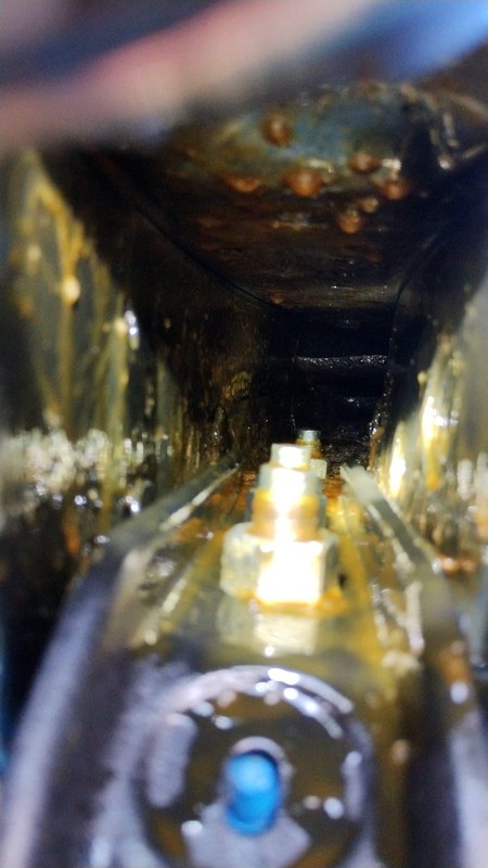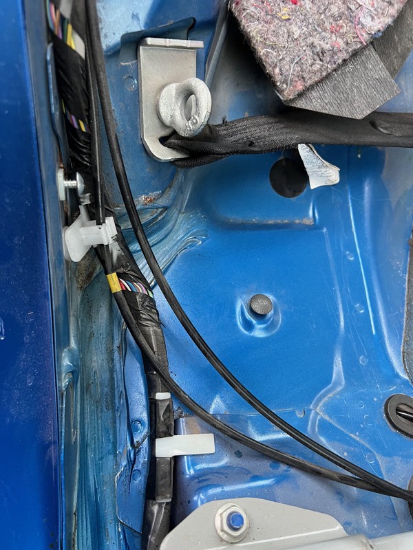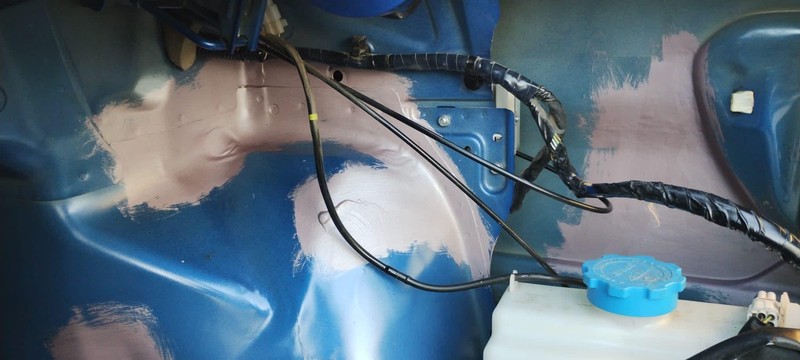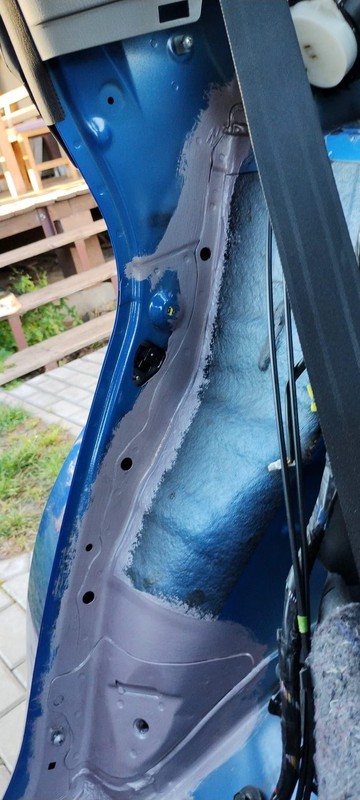 - A weld on the right strut tower, which surprised me a bit because from the outside, this area looked fine, but on the inside, where the seam is, rust had already started to form: