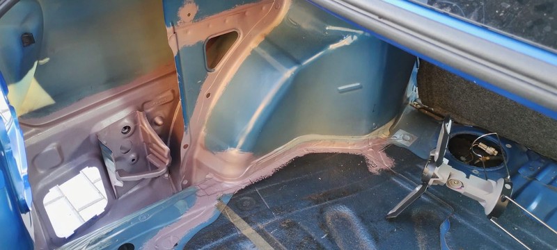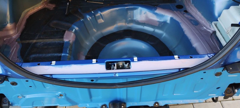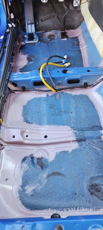 During the summer holidays, we stripped the interior from the dashboard to the trunk; now it’s time to finish the job. Although I’m already in Poznań, Tomek is still working on it. The condition is actually very good, no holes or deep rust pitting.