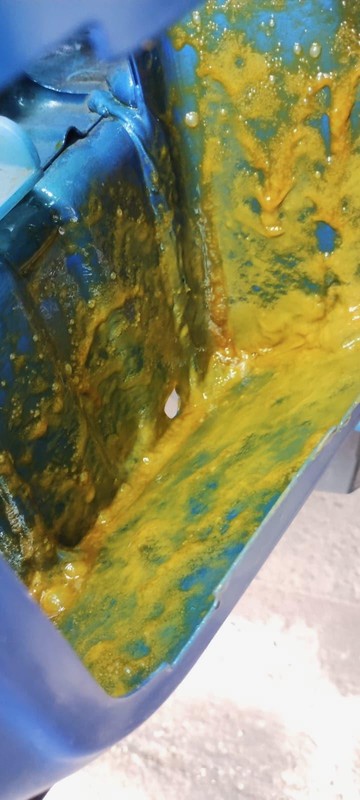 The method is exactly the same as for the undercarriage: stripping, sanding, and using the chemicals. The only difference is that instead of Cobra, Tomek is applying 02C paint as the final layer.