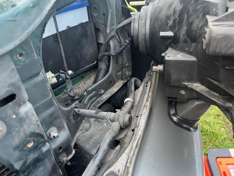 The T-joint is located under the left headlight. Small hands might be able to access it without removing the lamp, but I unscrewed it and gently pulled it out: