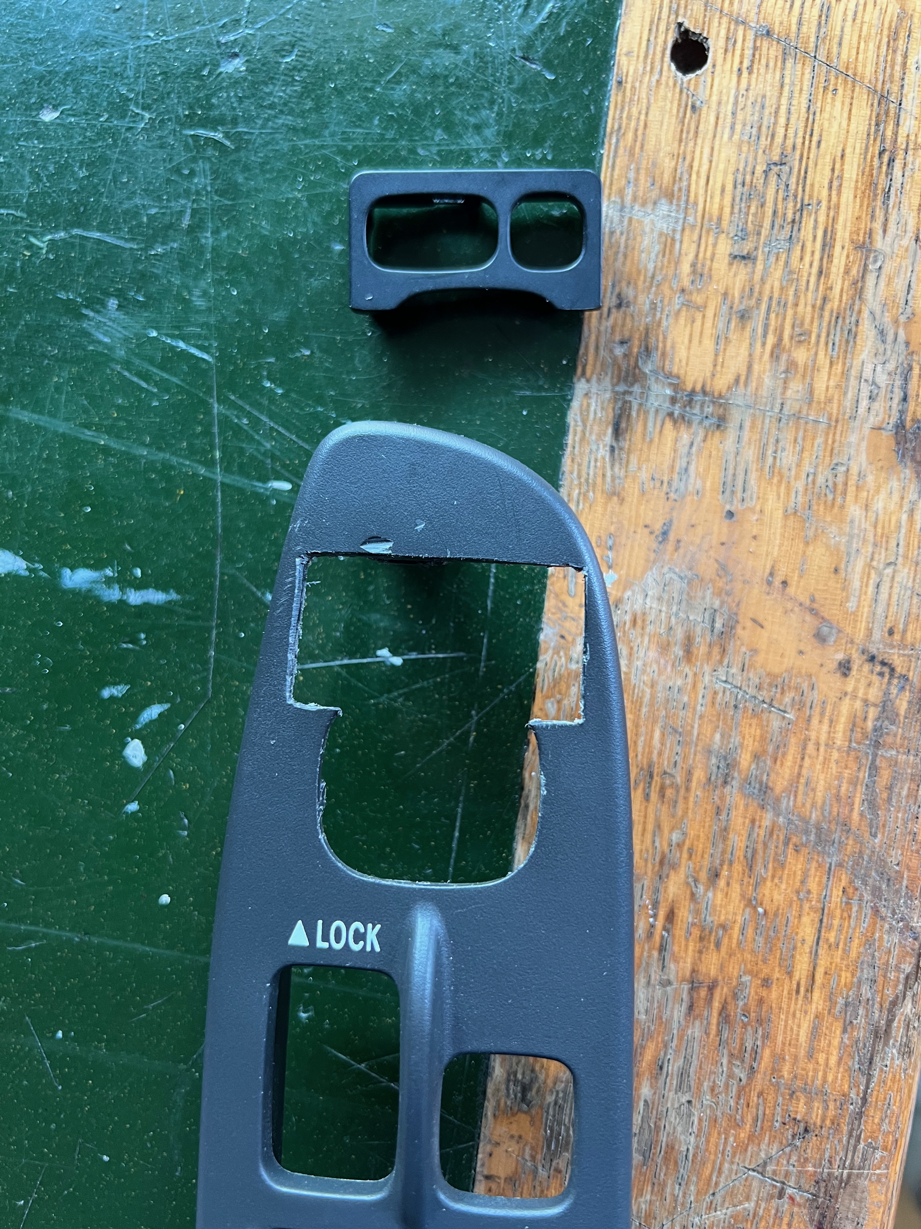 The advantage of this solution is that we keep the “ridge” between the two switches (L/R and fold) intact. A keen eye will notice the moment I heard: “You left the sunroof open and it’s starting to rain”.