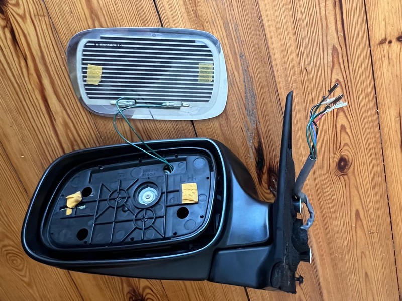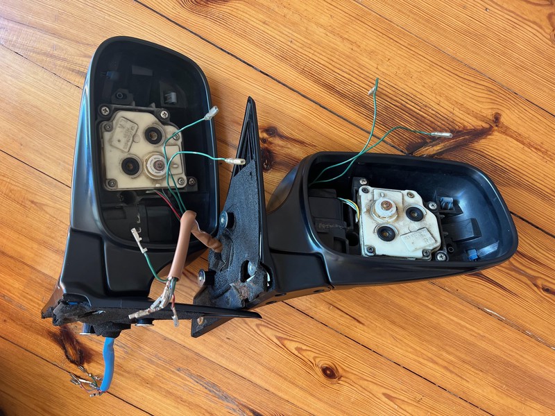 Getting the mirrors to work is a bit tricky. You need two sets, JDM and EUDM, to start with. Each set needs to be completely disassembled, and you’ll also need to add two extra wires to the harness and, finally, adjust the triangular bases to which the mirrors are attached. I decided to go with a hybrid approach: