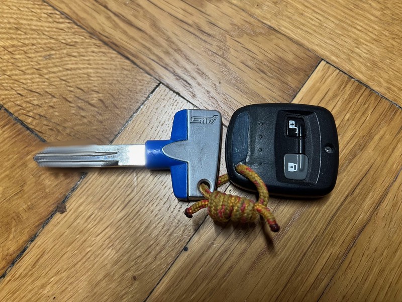 The key is intended for cars without an immobilizer, which created a bit of a problem. My Impreza obviously has an immobilizer, so I bought a replacement key and saw the blade off, resulting in something like this: