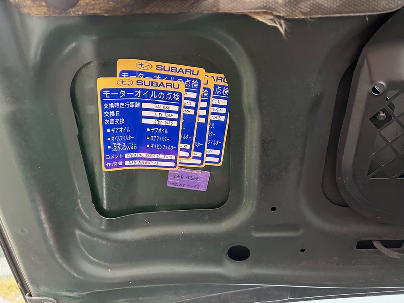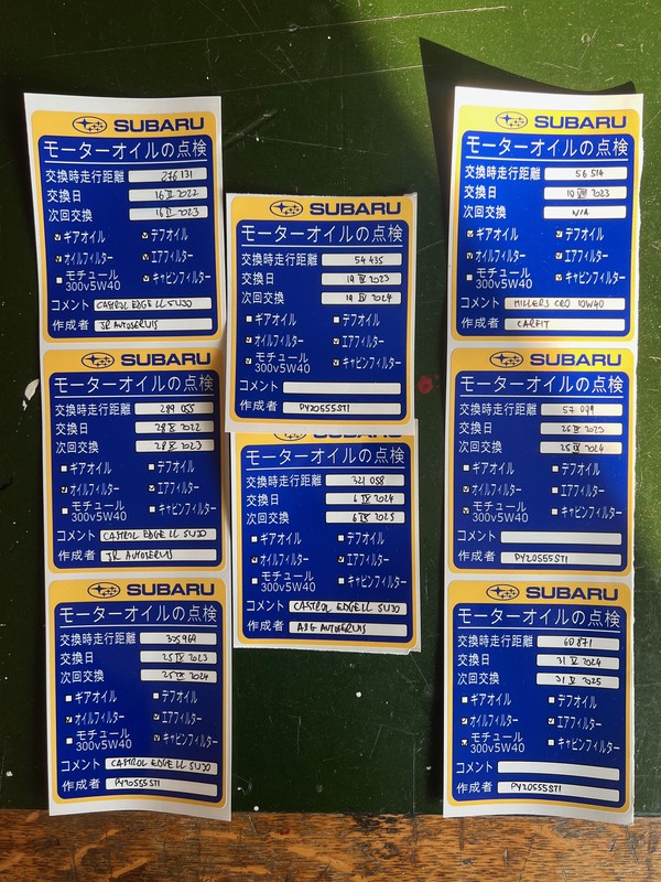 For quite some time, I have been changing the oil and filters myself. I have notes with the mileage and dates of the changes, but it always annoyed me that I had to check them to see if “it’s time.” Inspired by Boxer Beauty, who, by the way, have a lot of rare stickers for Subaru, I decided to fix this. Here’s the fix:
