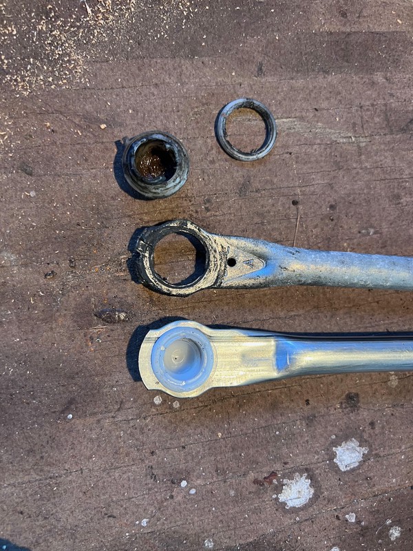 Next, disassemble the entire wiper mechanism and get access to replace the linkages. The photo clearly shows the level of wear - the plastic bushings were completely worn through and had broken into two parts.