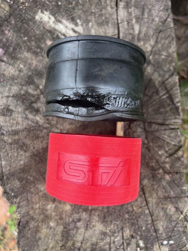 Honestly, I’m not convinced it was really worth it. Sure, it looks nice - red, with an STI engraving - but it’s slightly shorter and, more importantly, it doesn’t have those protruded edges for the hose clamps to sit against. On the plus side, the material does seem a bit stiffer.