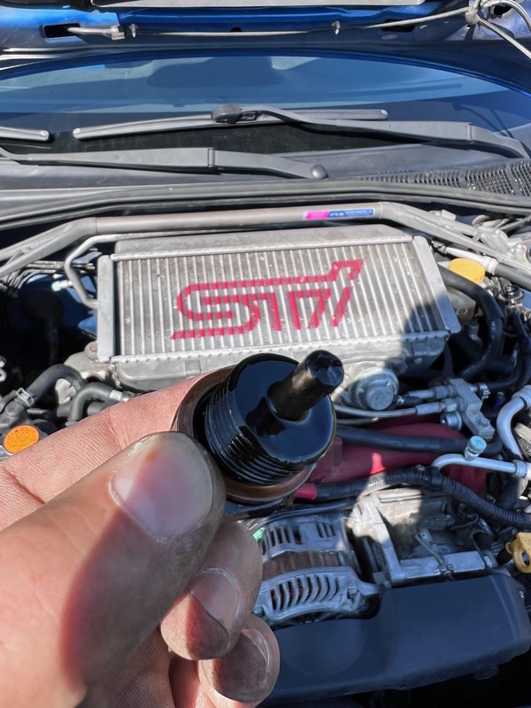 A clean magnetic drain plug, what every Subaru owner wants to see.