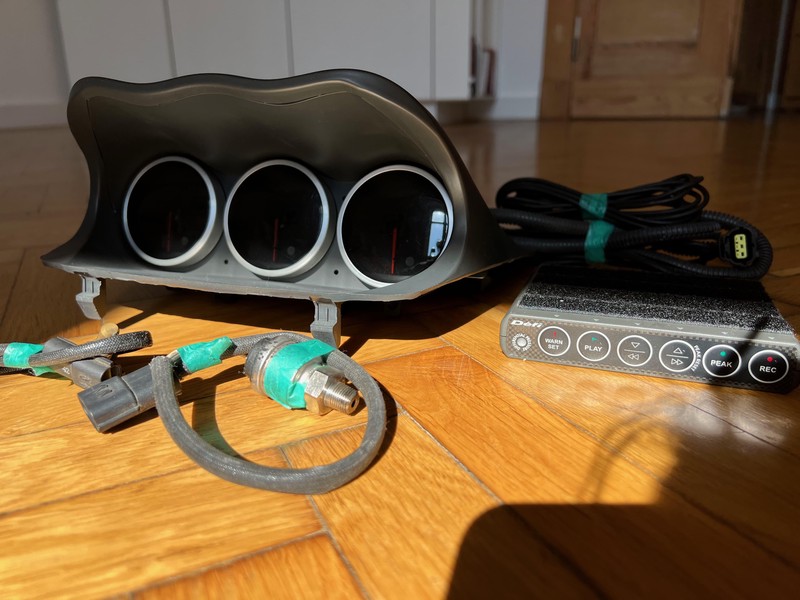 Oil pressure and temperature, as well as turbo boost from Defi, in the ATI gauge pod. That pod was really hard to find; I tracked it down in the Netherlands.
